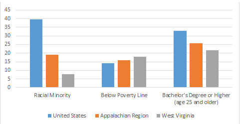 Uploaded UploadedFigure 1. Race, poverty, and education indicators in the United States, Appalachia, and West Virginia by percentage of the population.