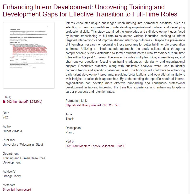You can access it four different ways: UW-Stout Library website, Graduate Student Library Guide, search engines like Google, or UW-Stout Archives website. You can also use the direct link here: Minds@UW Stout.
